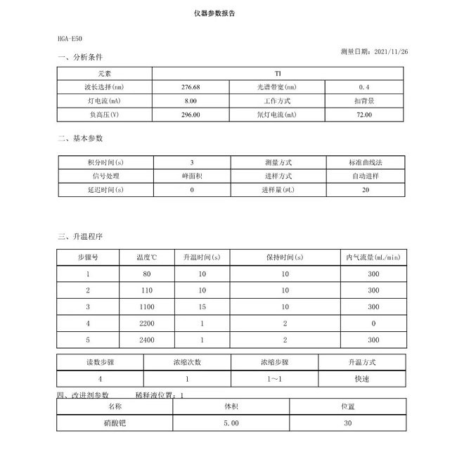 本文結(jié)合HJ 677-2013《水質(zhì) 金屬總量的消解 硝酸消解法》和HJ 748-2015《水質(zhì) 鉈的測定 石墨爐原子吸收分光光度法》,使用本公司最新推出的HGA-E50原子吸收分光光度計,對水質(zhì)質(zhì)控樣中的鉈元素進行了分析測定,結(jié)果表明,該法測鉈定值準(zhǔn)確。